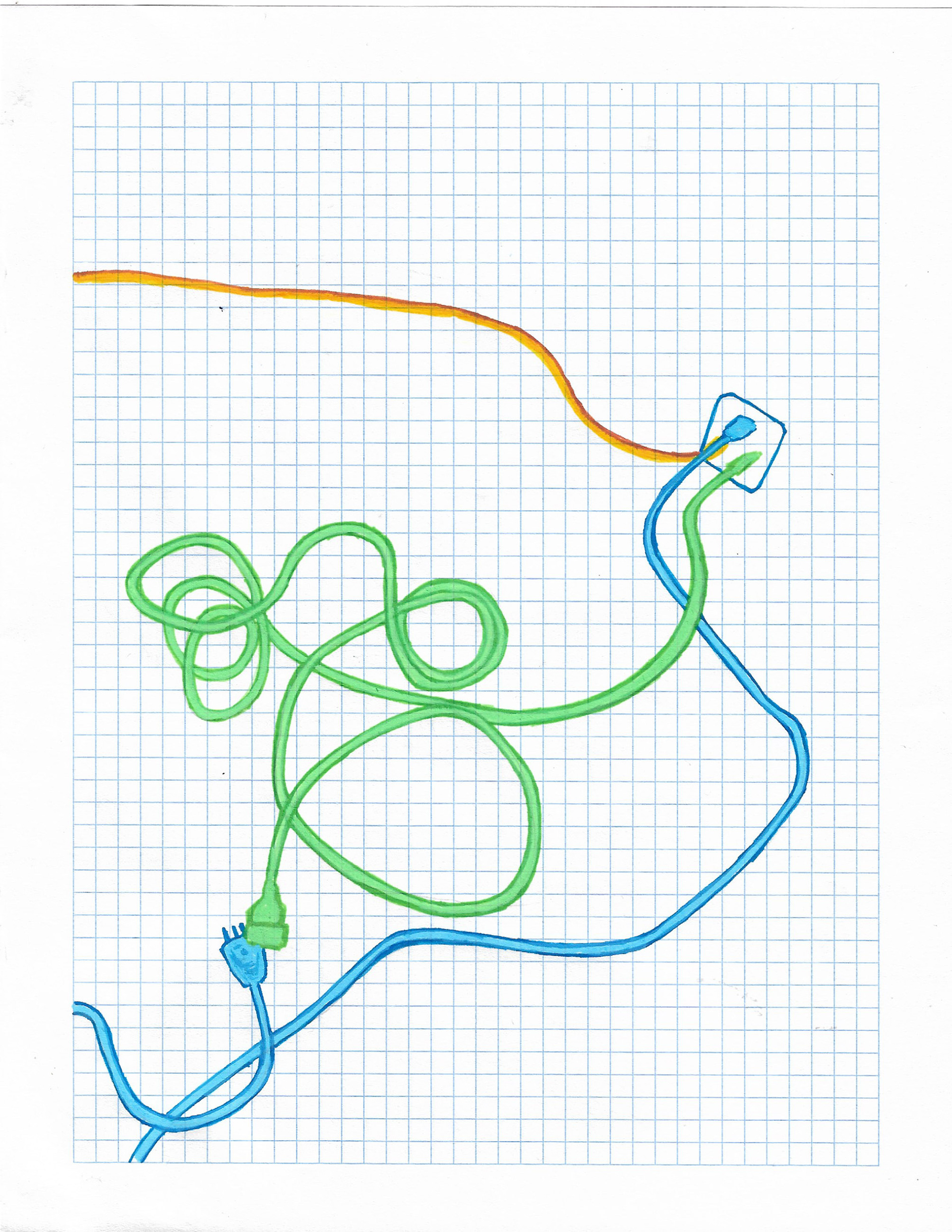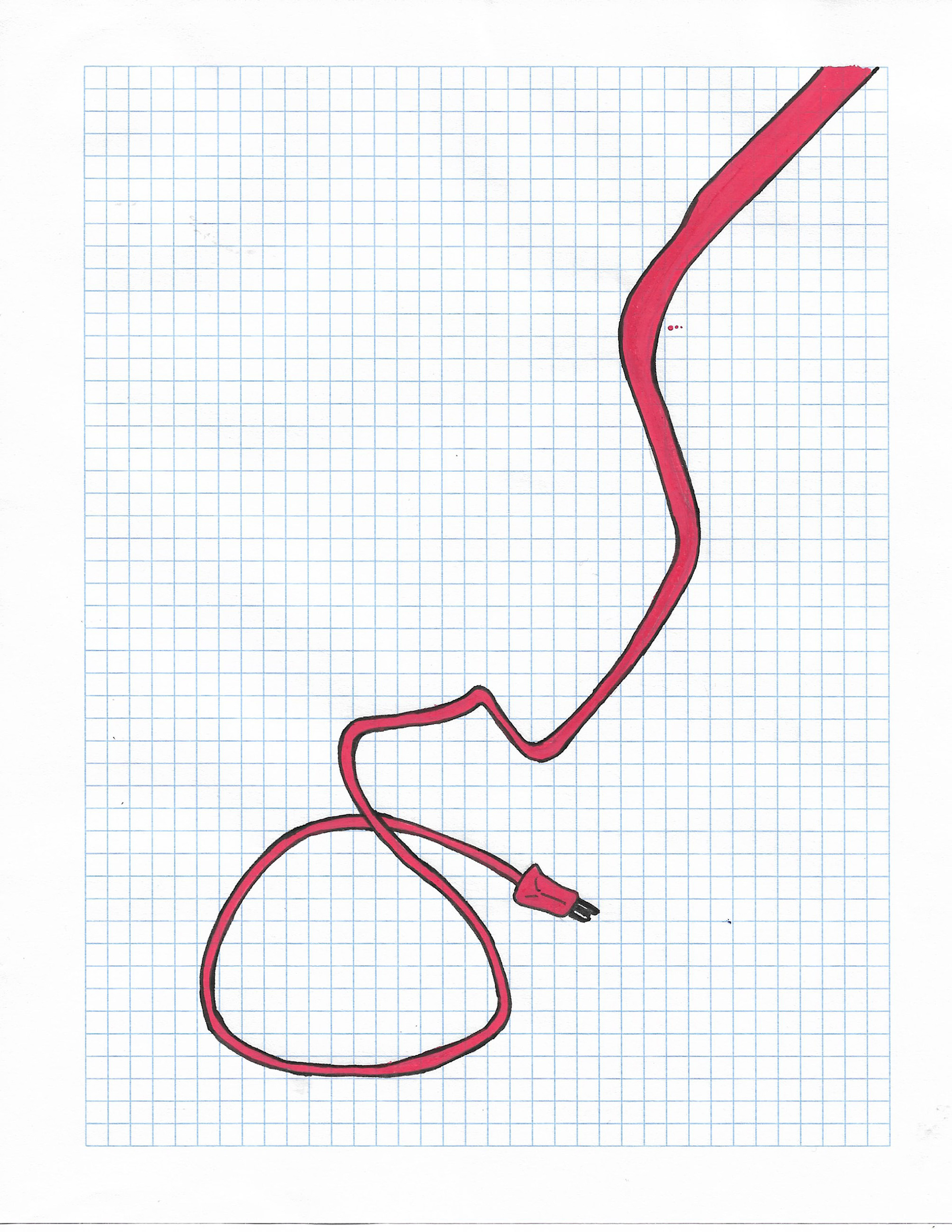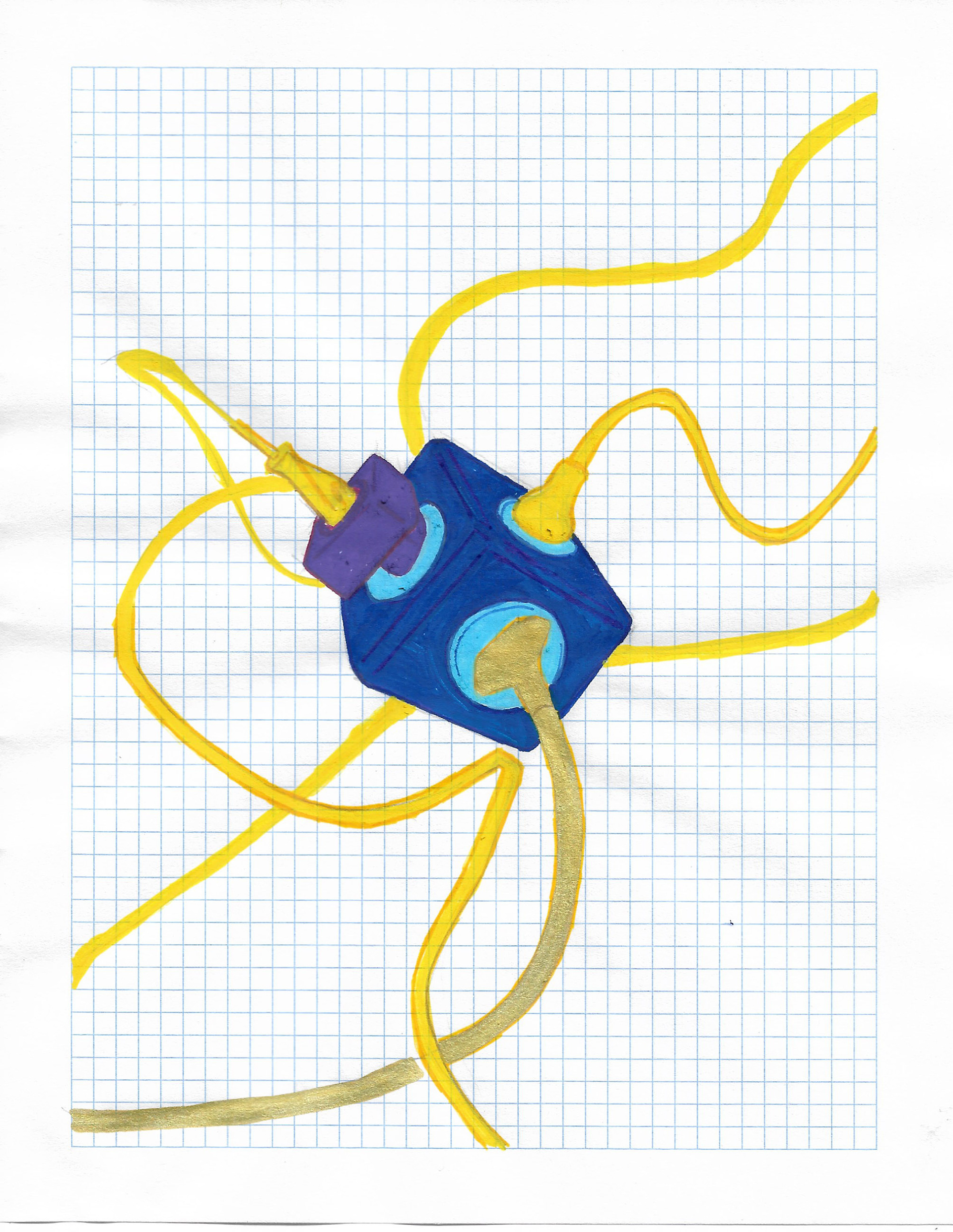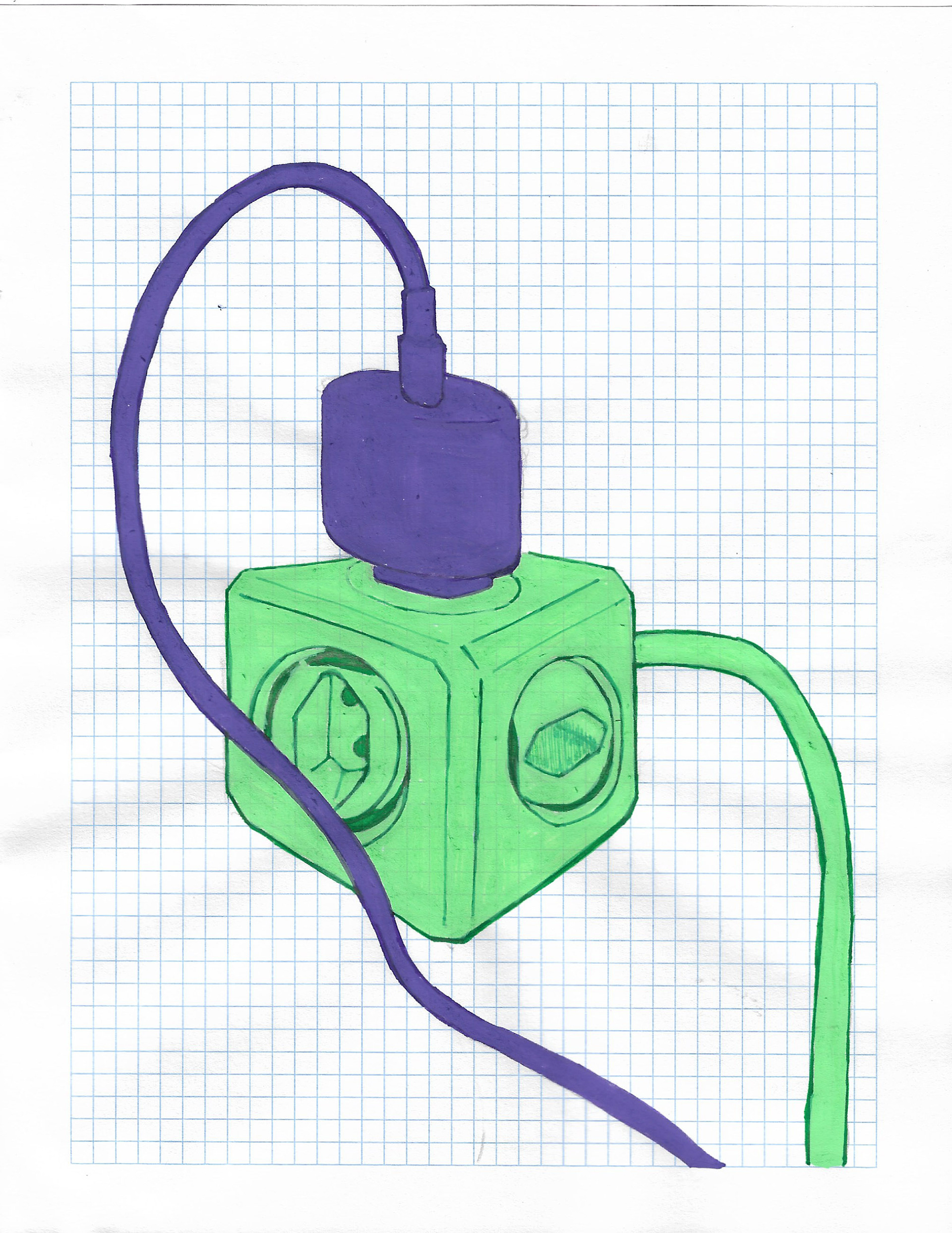 Drawings, magnets, rulers, several lamps, cutting-mat, ropes, safety stripes, metal drawer, cables