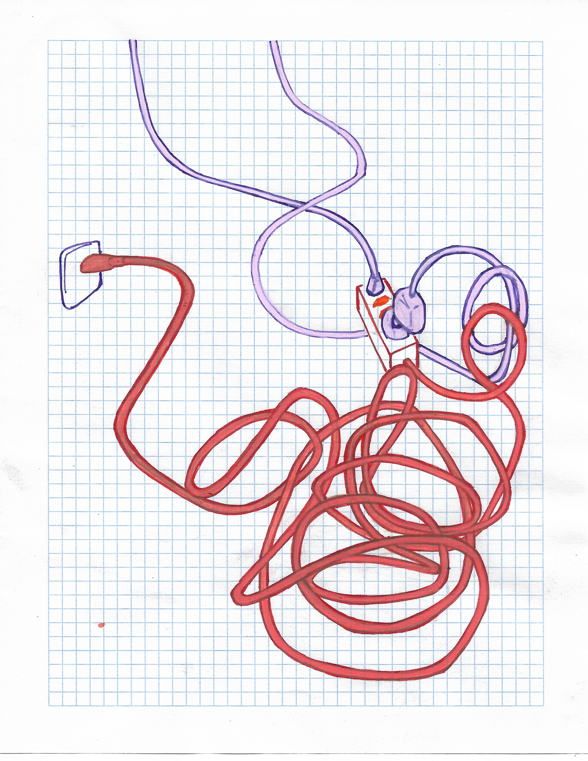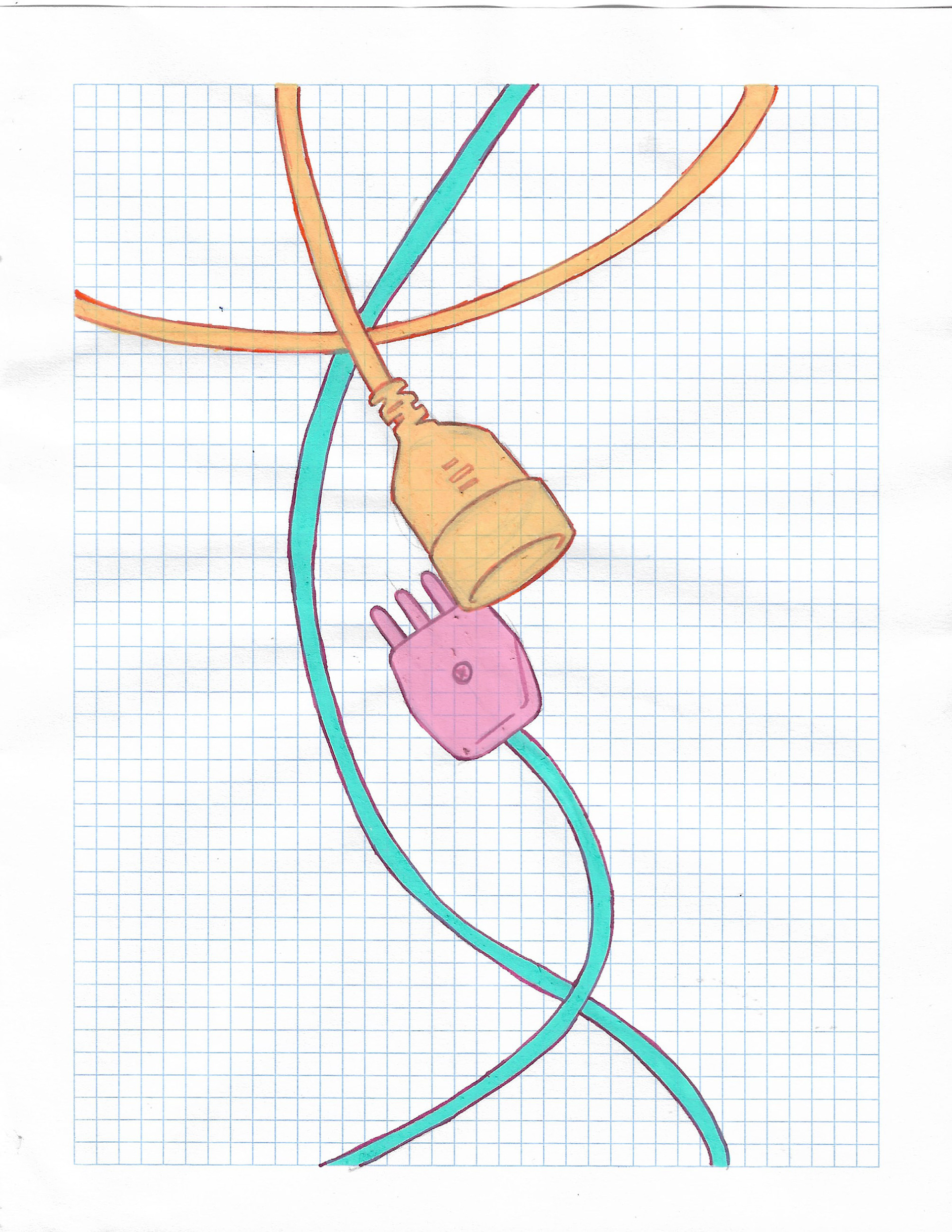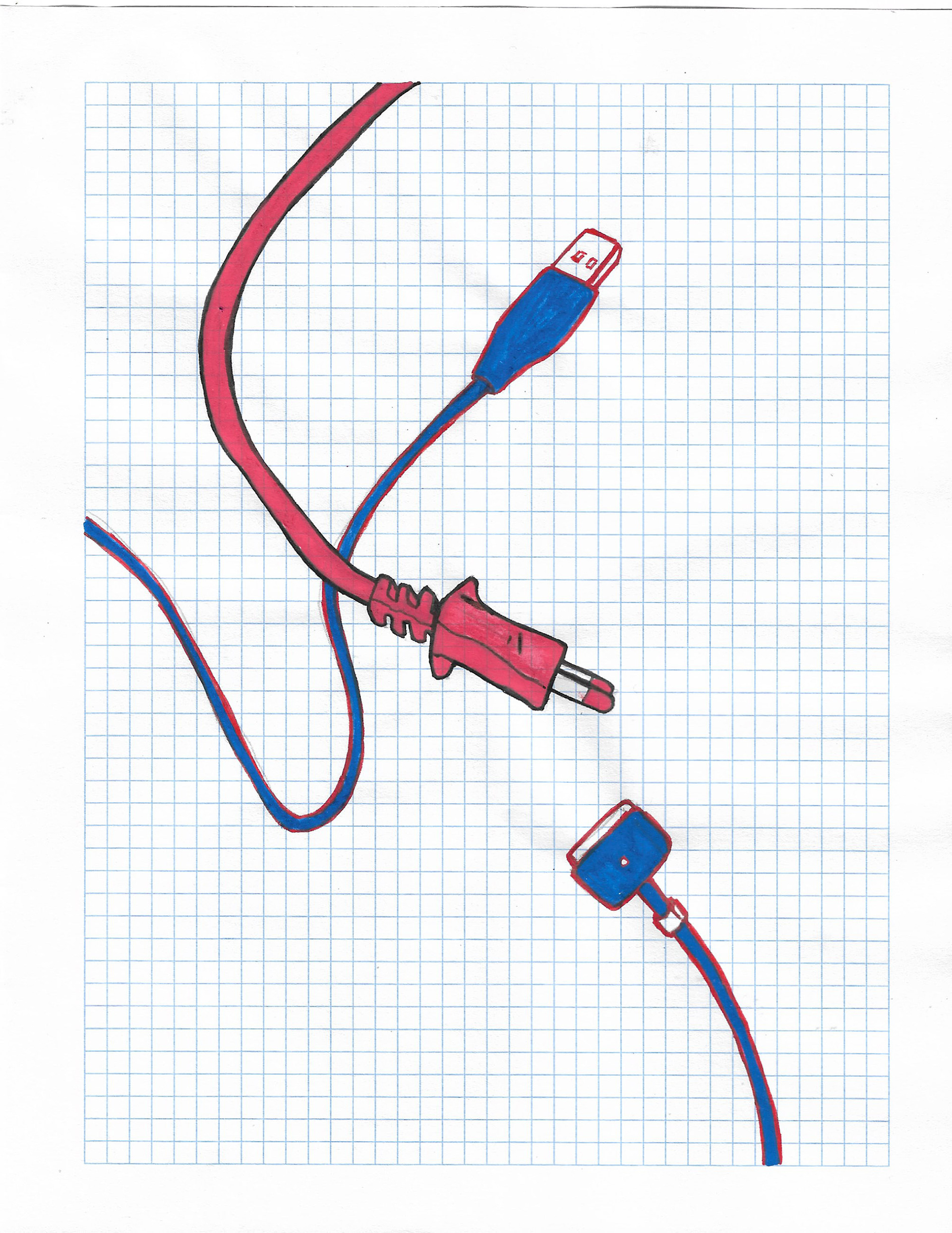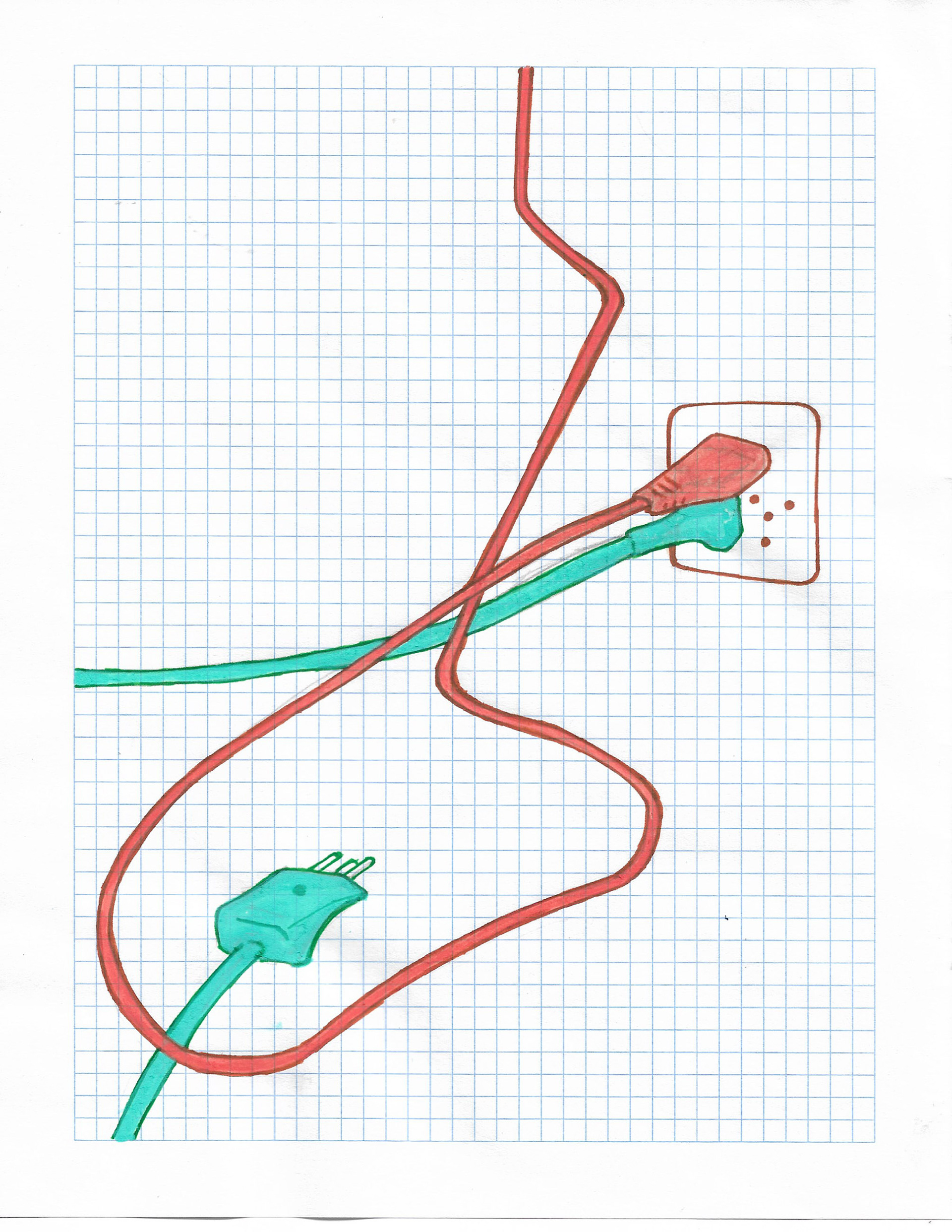 Drawings, magnets, rulers, several lamps, cutting-mat, ropes, safety stripes, metal drawer, cables
